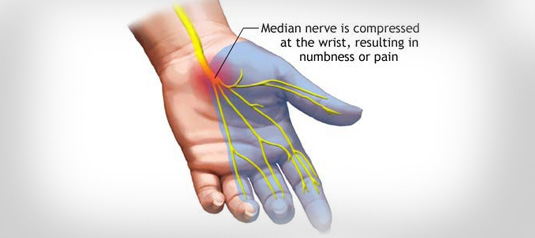 In this condition a median nerve is compressed at the wrist, leading to paresthesias, numbness and muscle weakness in the hand.
